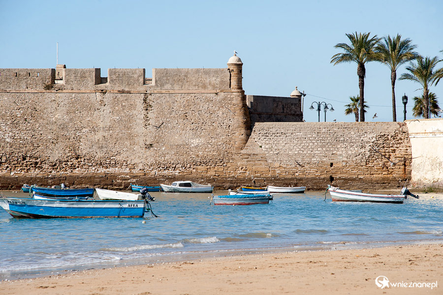 Kadyks. Łodzie przy Playa de la Caleta. W tle Castillo de Santa Catalina.