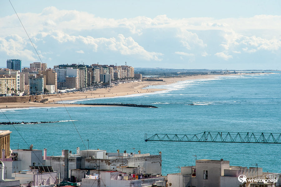 Kadyks. Widok z Torre Tavira na Playa de la Victoria.