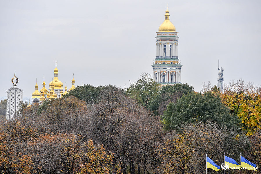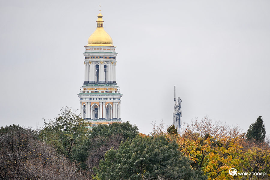Kijów.Widok na Ławrę Peczerską z hotelu Salut. W tle Pomnik Matki Ojczyzny.