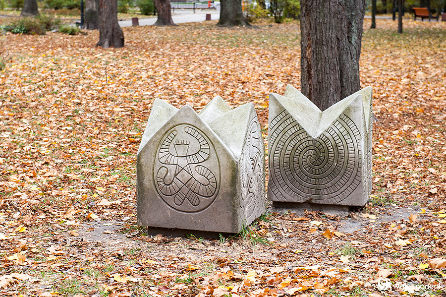 Kijów. Rzeźba przedstawiająca żabę w Parku Maryjskim.