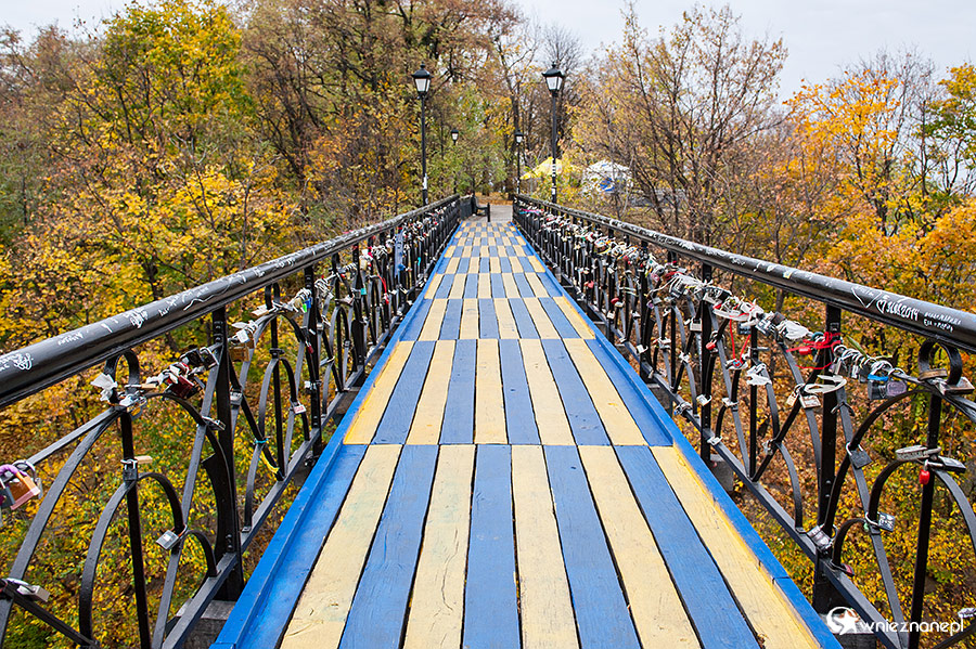 Kijów. Drewniany mostek w Parku Maryjskim. Tutaj też dotarł zwyczaj wieszania kłódek na znak miłości.