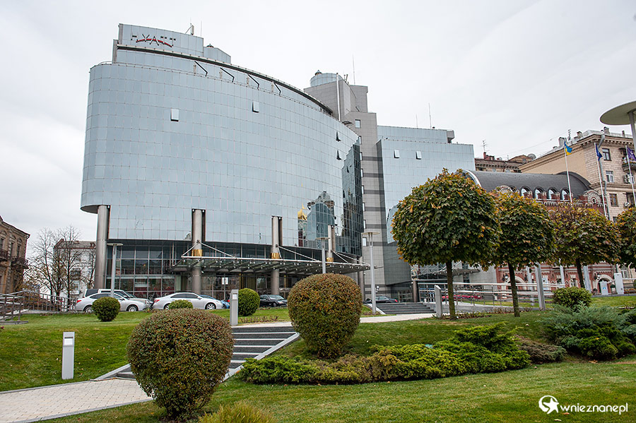Kijów. Wyróżniająca się bryła Hotelu Hyatt.