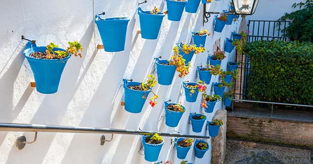 Donice z kwiatami na ścianach to powszechny widok w Kordobie (foto: wnieznane.pl)