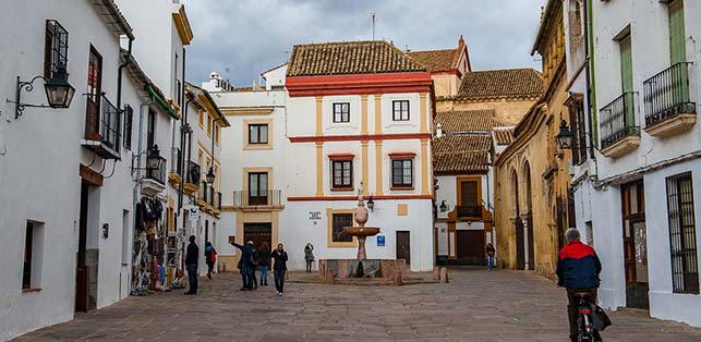 Spacer po Kordobie rozpoczynamy od dzielnicy żydowskiej (Juderia). Na teren dużego starego miasta wchodzimy przez Puerta de Sevilla, czyli jedną z bram w wysokich i grubych murach miejskich. Za nimi wita nas zupełnie inny świat. Nagle domy stają się białe, ulice brukowane, a na każdym kroku rosną dziesiątki drzewek pomarańczowych, oblepionych dojrzewającymi owocami.
