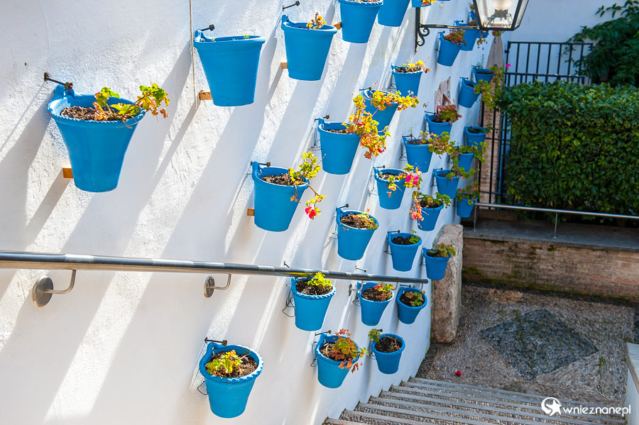Kordoba. Donice z kwiatami na ścianach domów niedaleko Calleja de las Flores. - foto: wnieznane.pl