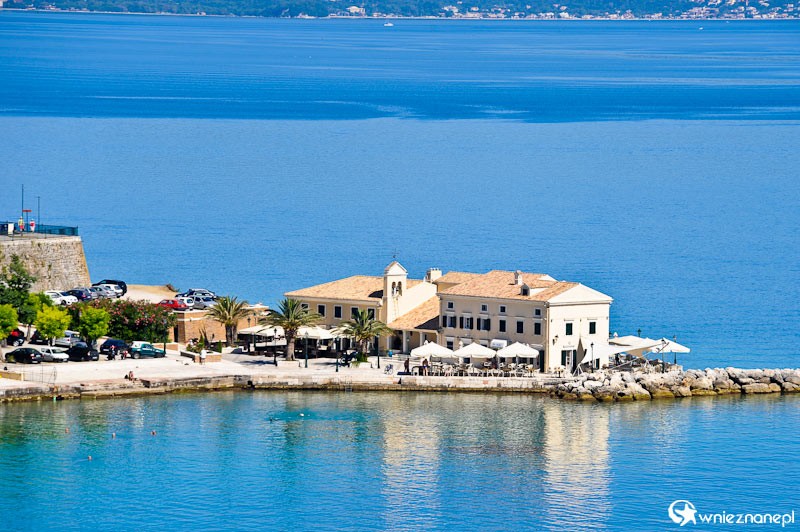 Grecka wyspa Korfu. Widok na Faliraki ze Starej Twierdzy w stolicy wyspy, Kerkirze.