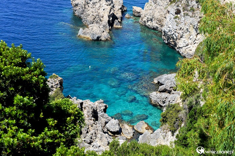Grecka wyspa Korfu. Widok z terenu monastyru Theotokou w miejscowości Paleokastritsa.