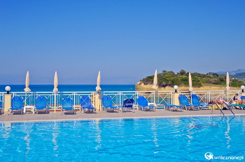 Grecka wyspa Korfu. Basen z widokiem na morze w miejscowości Sidari.
