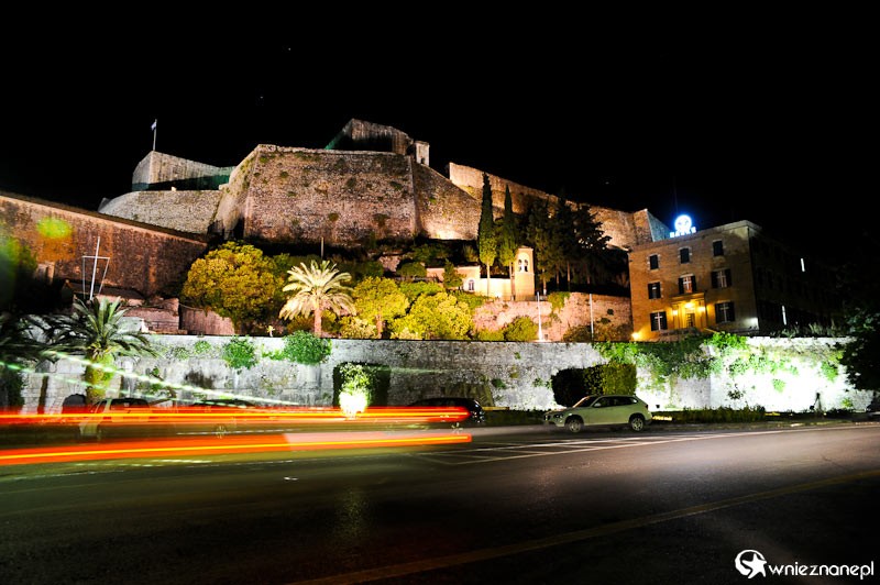 Grecka wyspa Korfu. Stolica wyspy, Kerkira nocą. Pięknie oświetlona Nowa Twierdza.