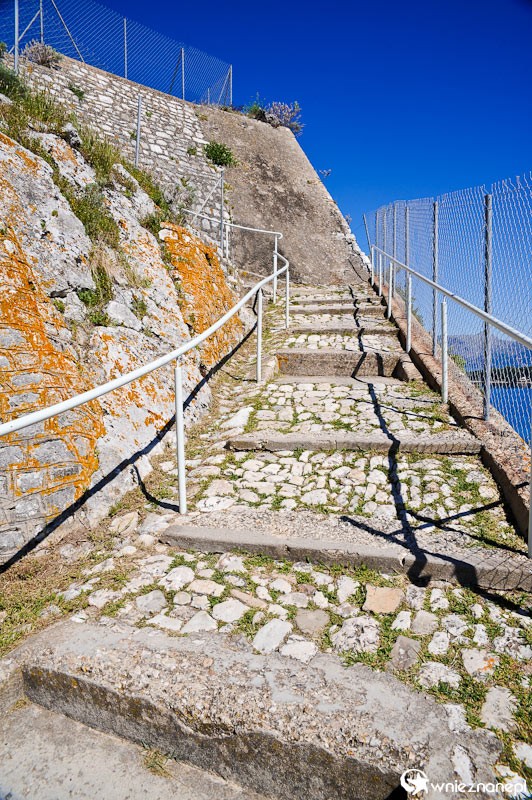 Grecka wyspa Korfu. Schodki na szczyt Starej Twierdzy w stolicy wyspy, Kerkirze.