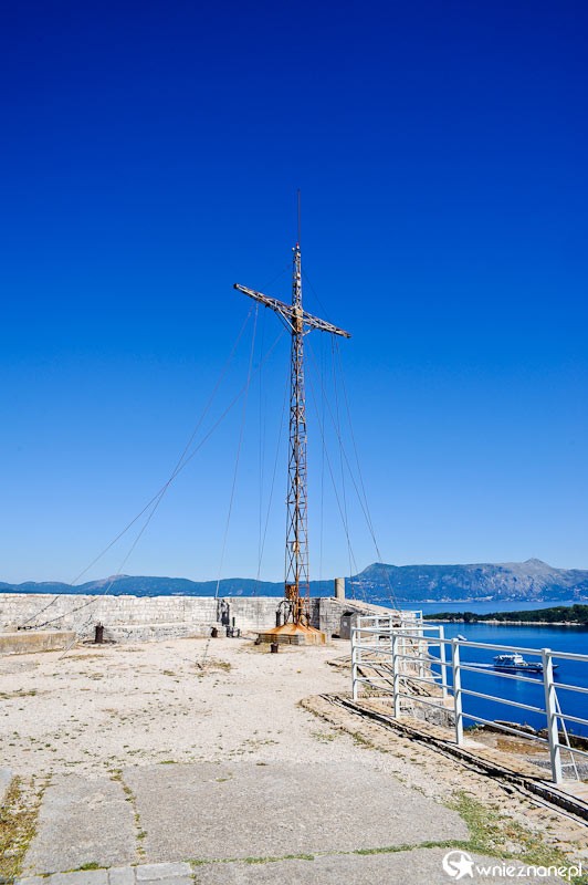 Grecka wyspa Korfu. Krzyż na szczycie Starej Twierdzy w stolicy wyspy, Kerkirze.