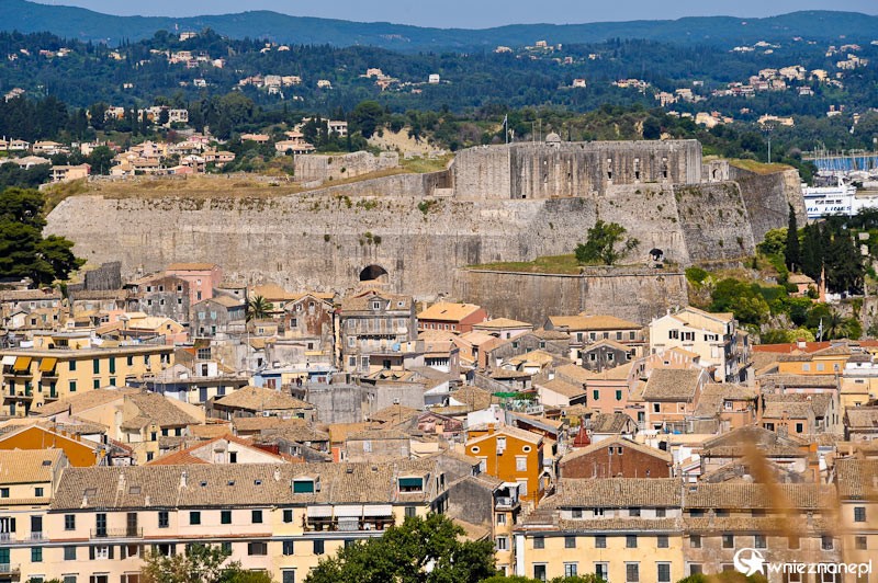 Grecka wyspa Korfu. Widok na miasto i Nową Twierdzę ze Starej Twierdzy w stolicy wyspy, Kerkirze.