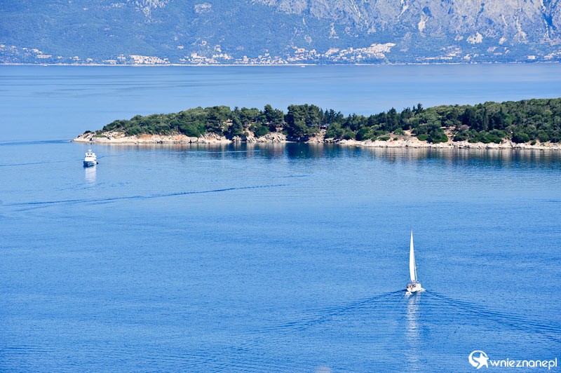 Grecka wyspa Korfu. Widok na wysepkę Vido ze Starej Fortecy w stolicy wyspy, Kerkirze.