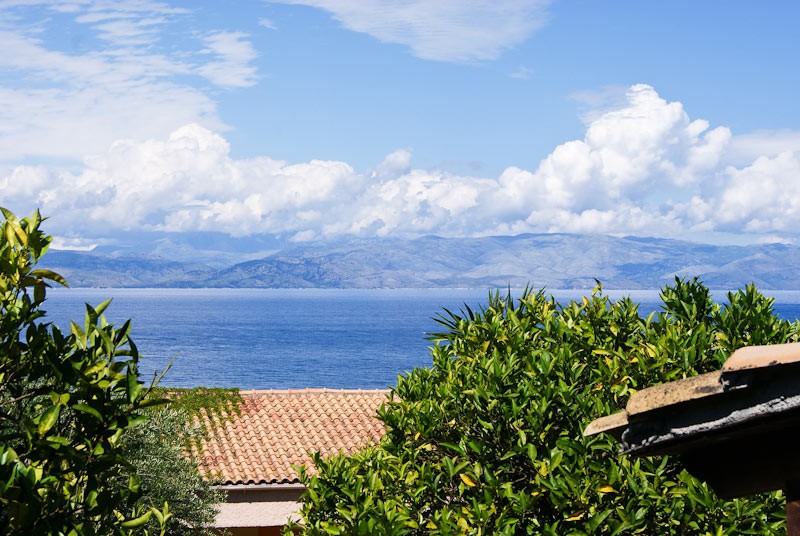 Grecka wyspa Korfu. Jeden z pięknych widoków na morze i Grecję kontynentalną.