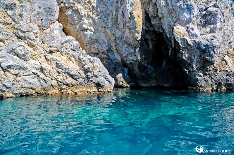 Grecka wyspa Korfu. Skaliste wybrzeże Morza Jońskiego  w miejscowości Paleokastritsa.  - foto: wnieznane.pl