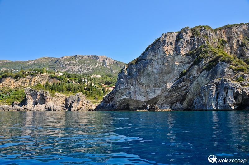 Grecka wyspa Korfu. Skaliste wybrzeże Morza Jońskiego  w miejscowości Paleokastritsa.   - foto: wnieznane.pl