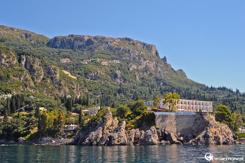 Grecka wyspa Korfu. Skaliste wybrzeże Morza Jońskiego  w miejscowości Paleokastritsa.   - foto: wnieznane.pl
