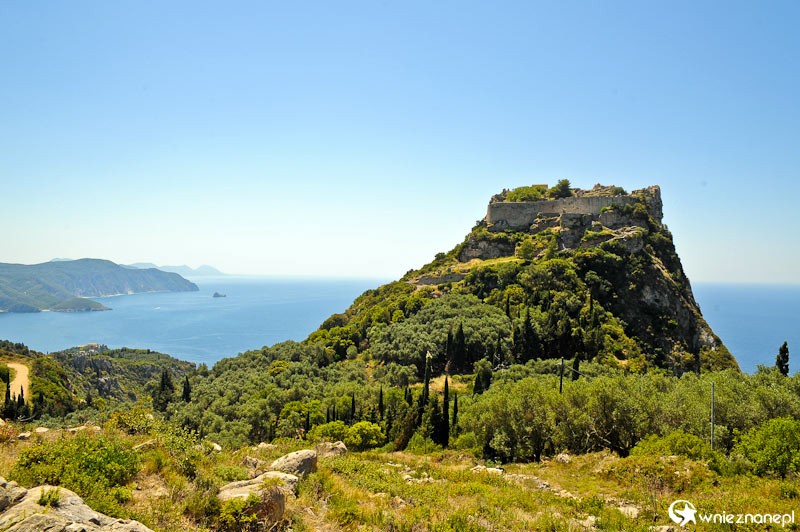 Grecka wyspa Korfu. Imponujące ruiny zamku Angelokastro.