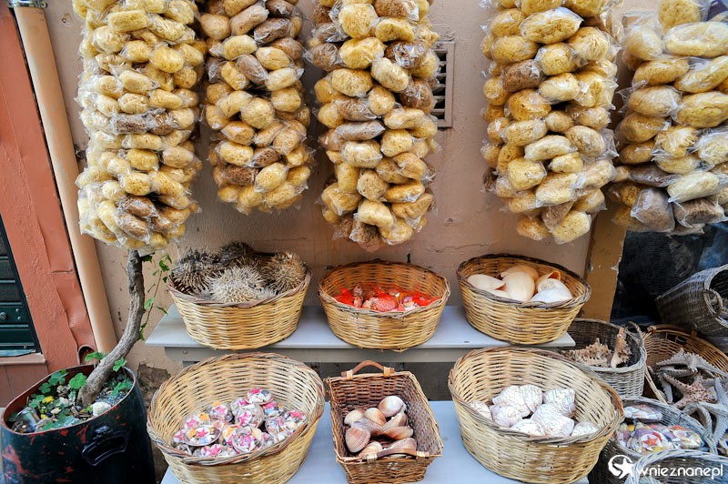 Grecka wyspa Korfu. Naturalne gąbki i muszle sprzedawne w stolicy wyspy, Korfu.