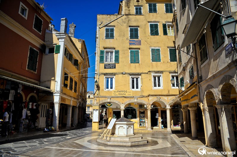 Grecka wyspa Korfu. Malowniczy placyk w obrębie starego miasta w Kerkirze.