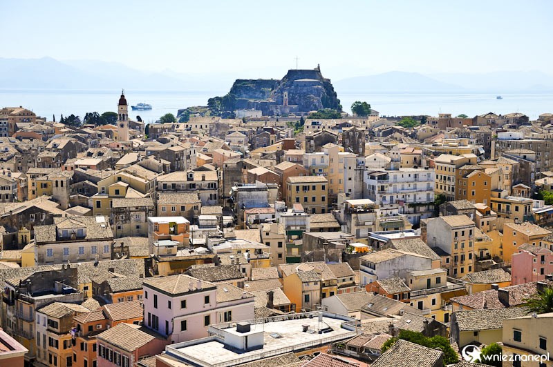 Grecka wyspa Korfu. Przepiękny widok na stare miasto i Starą Twierdzę z Nowej Twierdzy w stolicy wyspy, Kerkirze.