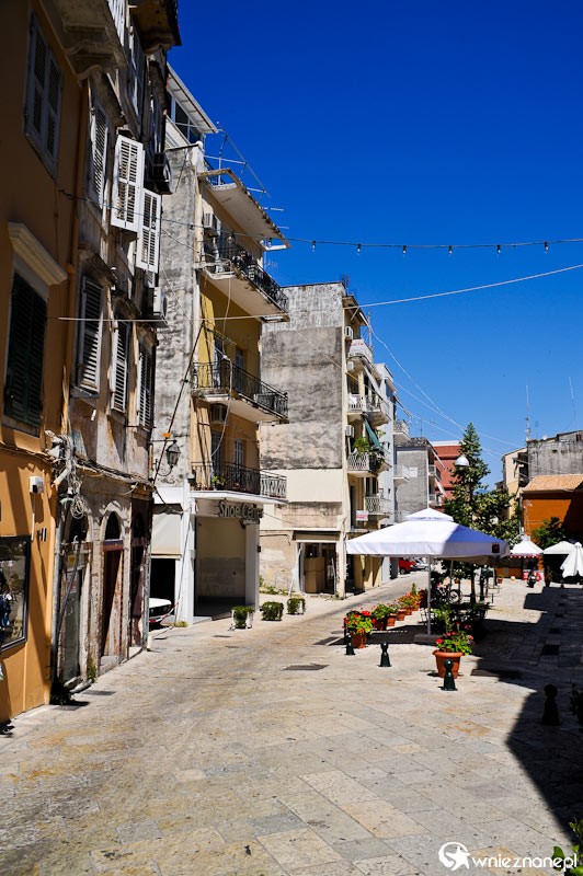 Grecka wyspa Korfu. Wąska uliczka w stolicy wyspy, Kerkirze.   - foto: wnieznane.pl