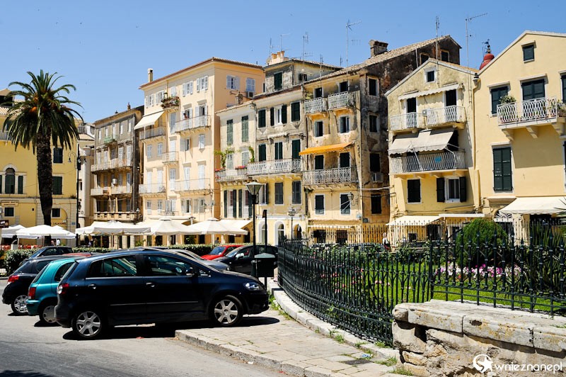 Grecka wyspa Korfu. Piękne włoskie kamienice w stolicy wyspy, Kerkirze.