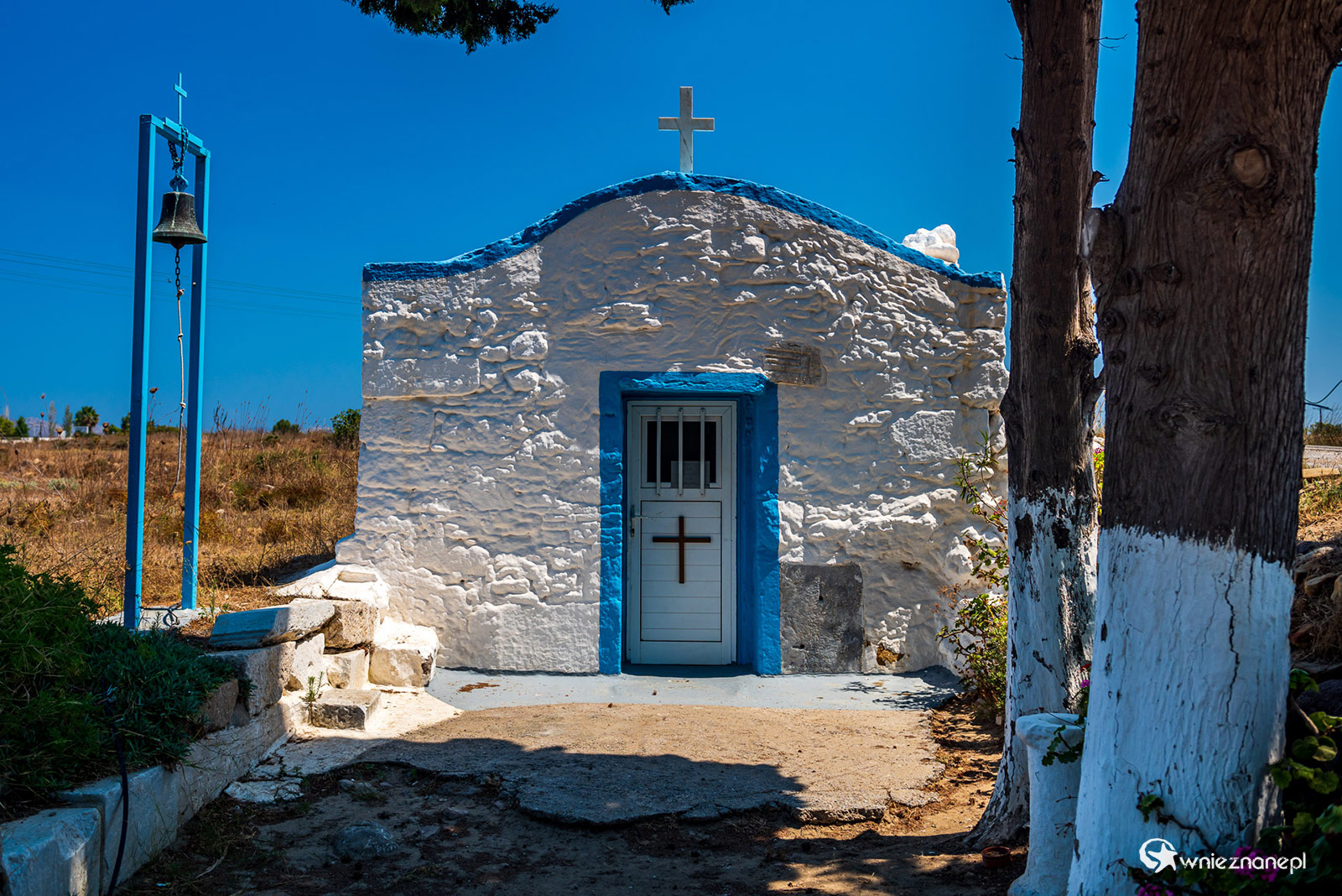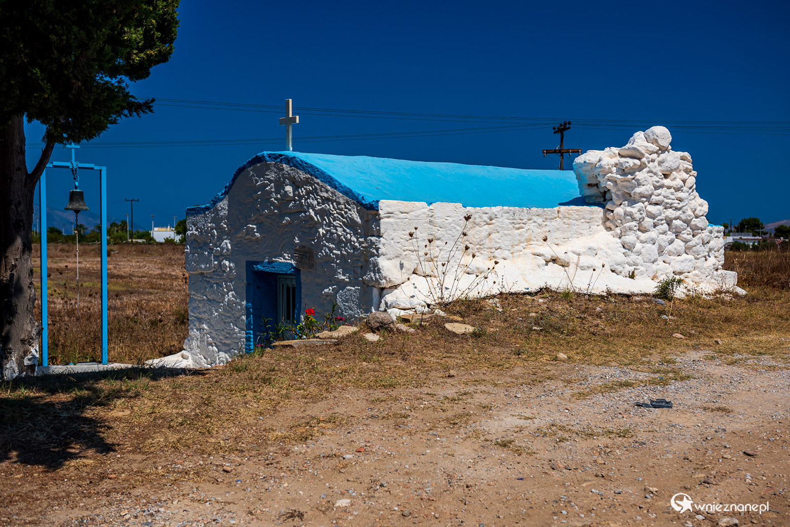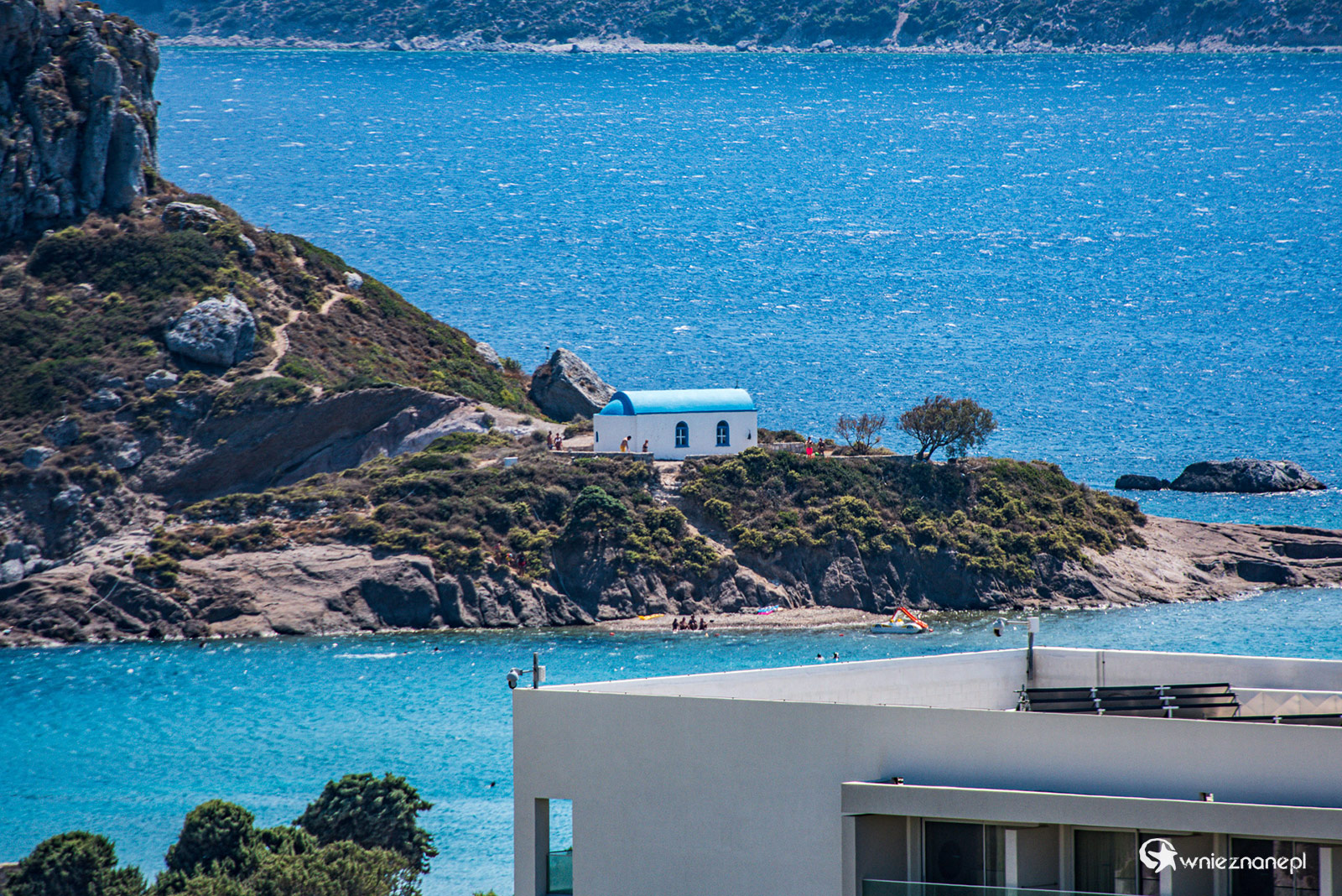 Kos. Malowniczy kościółek w środku wyspy.