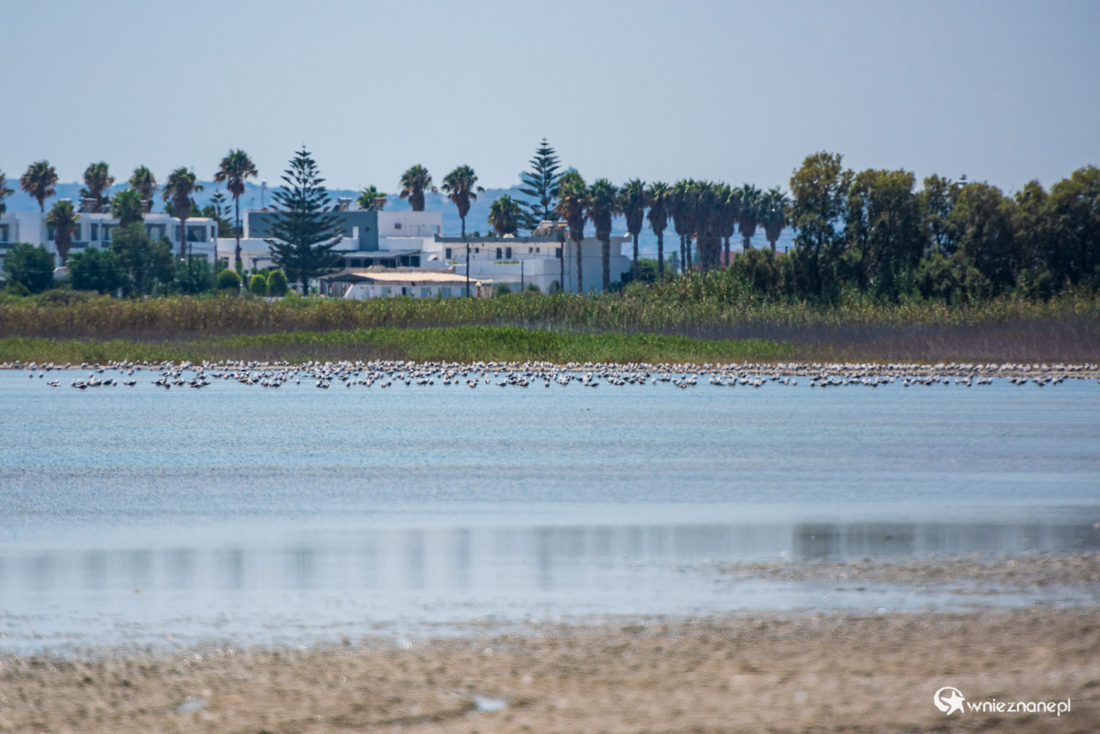 Kos. Ptaki brodzące w słonym jeziorze Alikes.