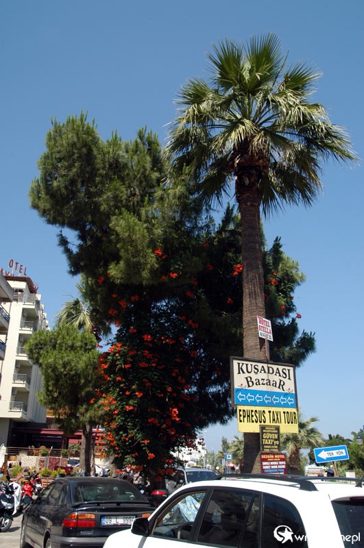 Miasto Kusadasi, egzotyczne rośliny rosnące w centrum miasta.