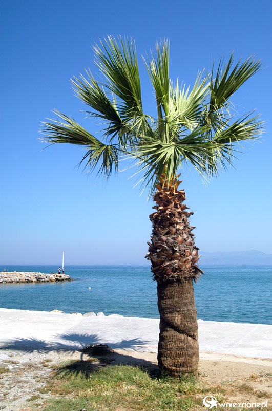 Miasto Kusadasi. Palma rosnąca tuż nad brzegiem morza.