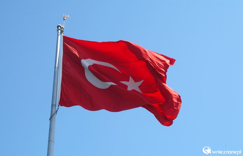Powiewająca na wietrze czerwono-biała flaga turecka.