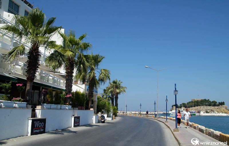 Miasto Kusadasi. Droga prowadząca z centrum do słynnej Pigeon Island (Ptasiej Wyspy), widocznej z prawej strony.