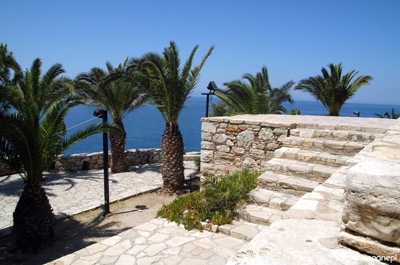 Miasto Kusadasi. Na Pigeon Island (Ptasiej Wyspie, Gołębiej Wyspie). Widok na morze z zabudowań obronnych.