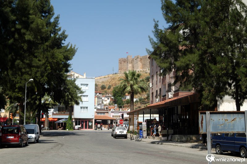 W mieście Selcuk. Widok na jedną z ulic. W tle zamek położony na wzgórzu Ayasuluk