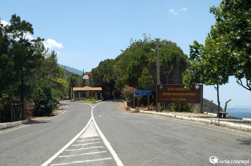 Wjazd do Dilek Peninsula Park, gdzie można zobaczyć delfiny, a także żółwie żyjące na wolności.