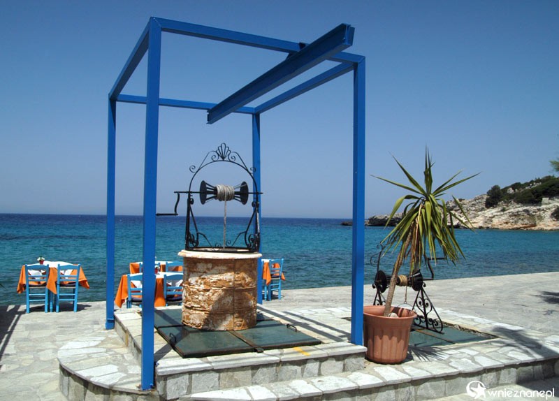 Restauracja tuż przy turkusowym morzu. Miejscowość Kokkari na greckiej wyspie Samos.