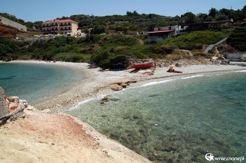 Dzika kamienista plaża, okolice miejscowości Kokkari na greckiej wyspie Samos. - foto: wnieznane.pl