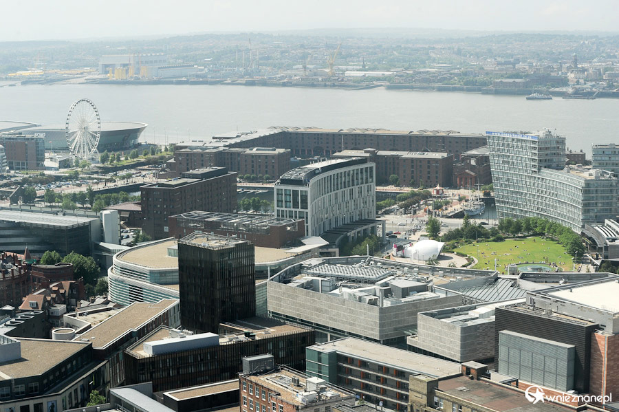 Liverpool. Widok z wieży widokowej St John's Beacon na miasto. W tle Albert's Dock.