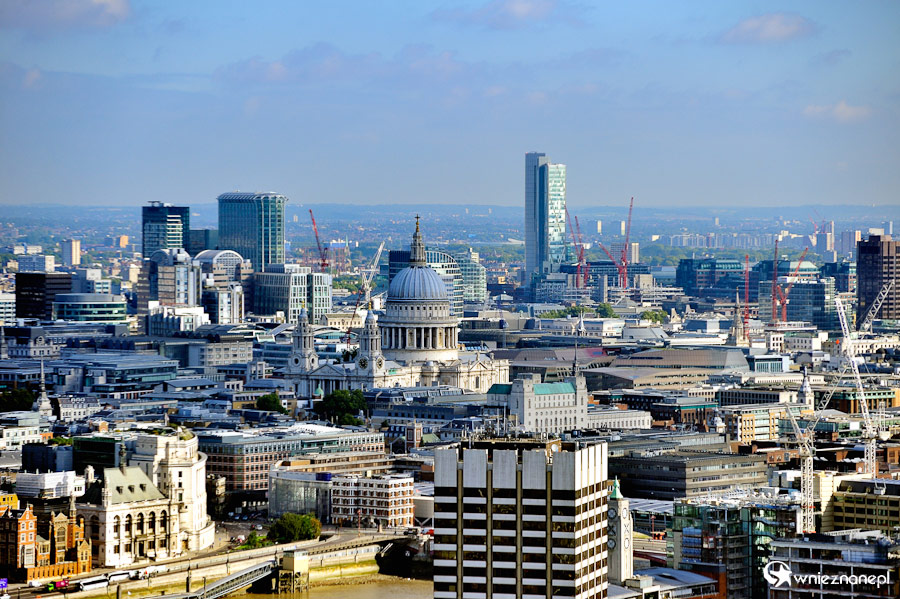 Londyn. Panorama miasta, z Katedrą św. Pawła, widziana z London Eye.