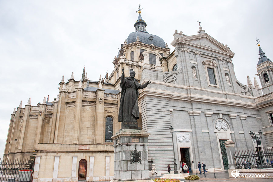 Madryt. Pomnik św. Jana Pawła II na placu obok katedry.