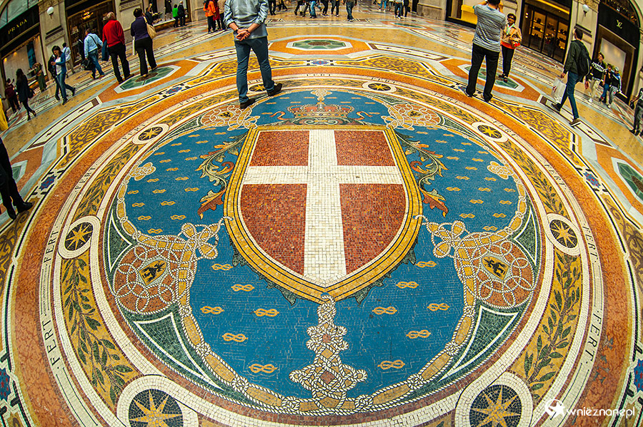 Mediolan. Mozaiki we wnętrzu Gallerii Vittorio Emanuele II.