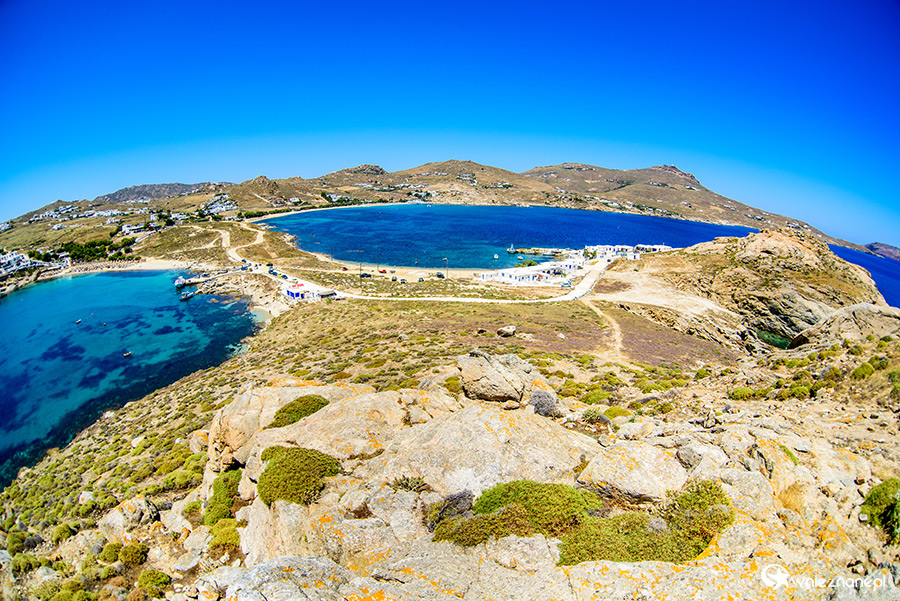 Mykonos. Widok na plaże Agia Anna, Kalafatis i Divounia.