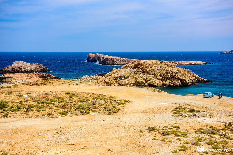 Mykonos. Surowe skaliste wybrzeże niedaleko plaży Agios Sostis. - foto: wnieznane.pl
