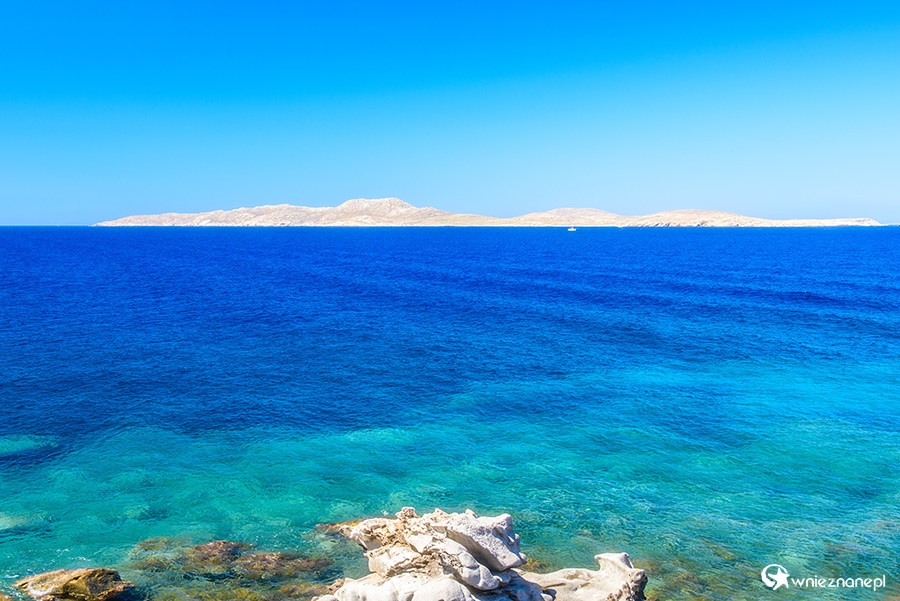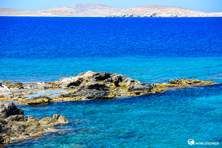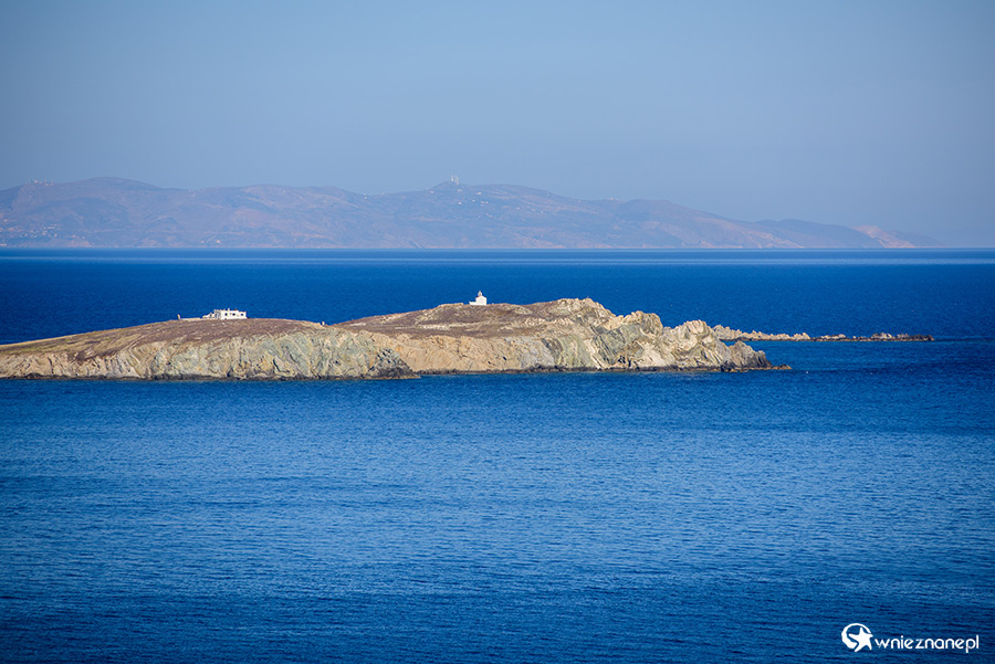 Mykonos. Widok z okolic położonej w południowo-zachodniej części Mykonos plaży Kapary na sąsiednie wyspy.