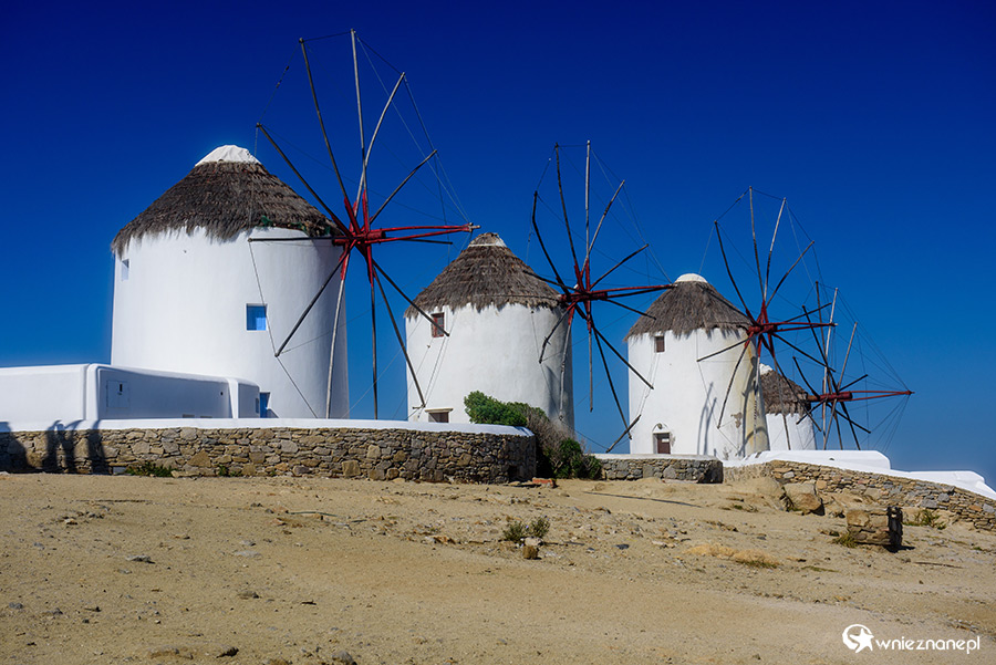Mykonos. Słynne wiatraki w stolicy wyspy są jednym z najchętniej fotografowanych miejsc na Mykonos.