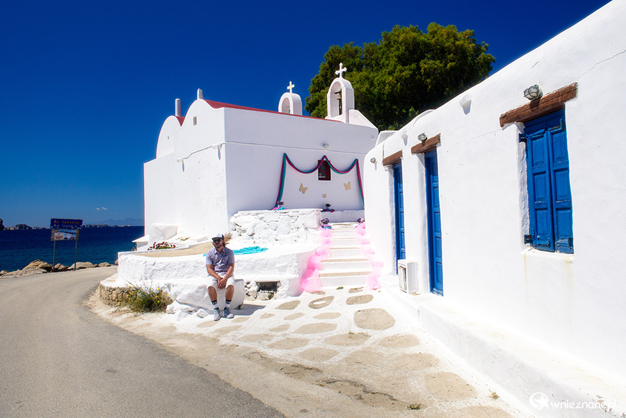 Mykonos. Przystrojony kościół Agios Ioannis niedaleko plaży o tej samej nazwie.