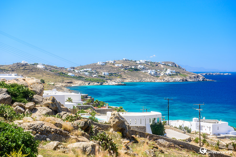Mykonos. Okolice położonej w południowo-zachodniej części wyspy Ornos Beach.