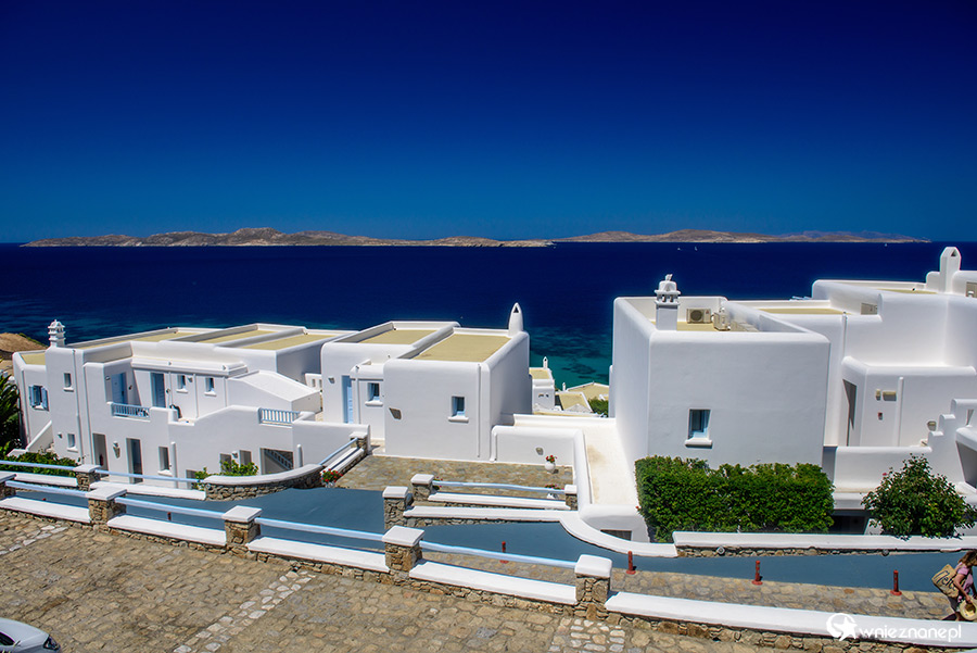 Mykonos. Ekskluzywne wille zbudowane są na zboczach i oferują wspaniałe widoki.