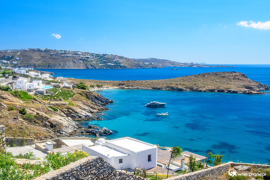 Mykonos. Południowo-zachodnia część wyspy zabudowana jest głównie przez ekskluzywne wille.